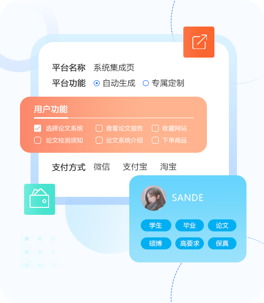 支持多個論文系統(tǒng),連接到系統(tǒng)后臺系統(tǒng)的免費(fèi)集成頁,引流到各個平臺,把用戶都沉淀到自己的論文集成頁內(nèi)。